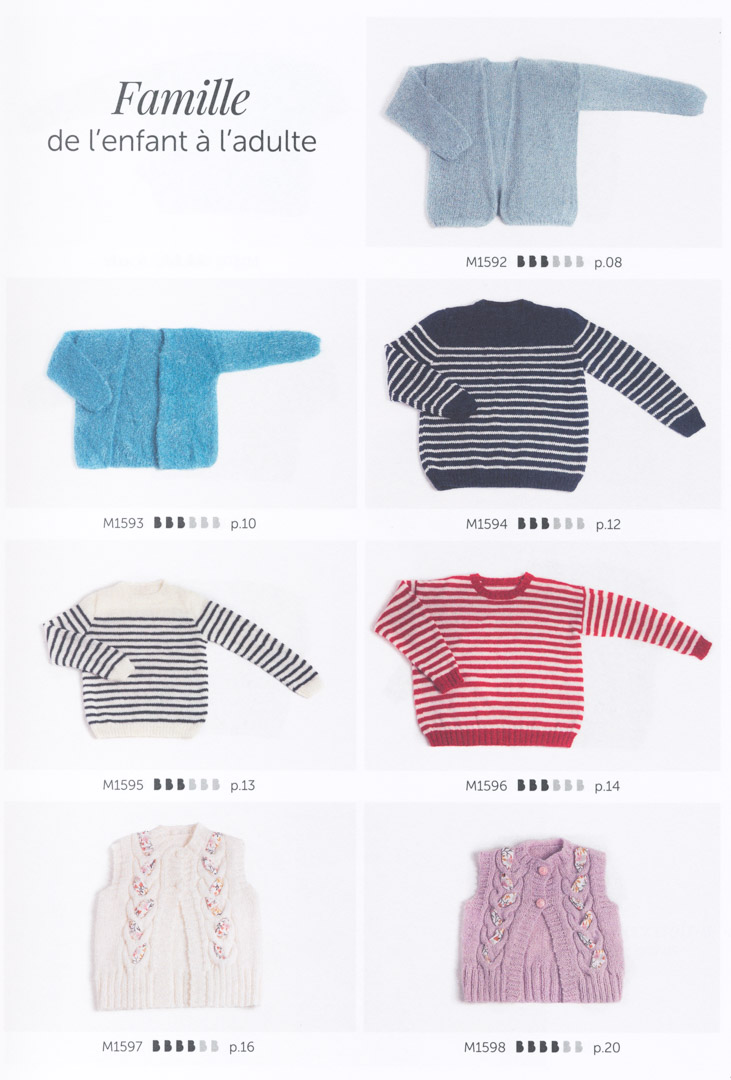 Le Livre Famille Bergère – N°38 a été imaginé et créé avec une collection de modèles « parent – enfant ». 20 Modèles simples à tricoter, faciles à porter et réfléchis dans des fils adaptés à chaque âge.
