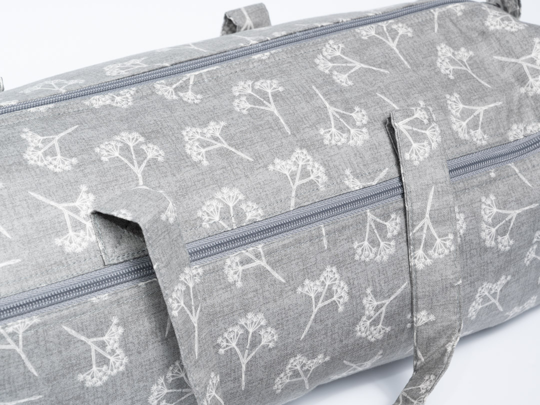Voici le Sac à tricot Pissenlit avec de jolis motifs blanc sur fond gris. Il est composé d’une grande partie principale ainsi que d’une poche à l’avant. Très Léger, ce sac est pratique à emporter partout ! Vous rangerez facilement tout ce dont vous avez besoin pour réaliser de beaux projets.